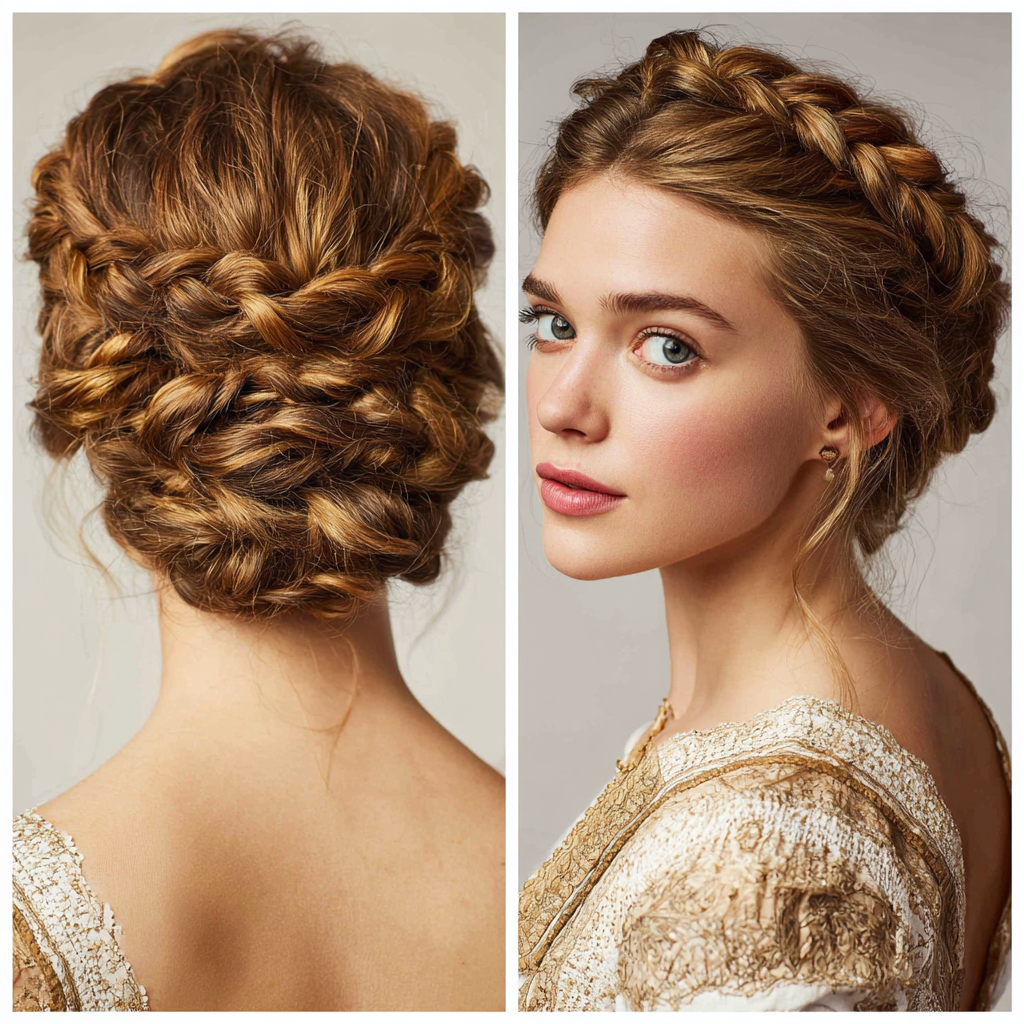 Opt for a romantic and ethereal look with a Glam Hair twisted crown braid. This style involves creating two braids, one on each side of your head, and then twisting them together to form a crown. This style of Hairdo Bridesmaid exudes elegance and is ideal for weddings or formal events. This style can also be easily adapted for other special occasions like prom or graduation. Start by braiding sections of your hair near your hairline, then gently twist them around your head, securing them with bobby pins. The crown braid is perfect for adding a touch of bohemian flair to your Glam Hair. A subtle touch of glitter hairspray can also add a touch of magic. This hairstyle is suitable for medium to long hair and can be customized with flowers or delicate accessories to match your outfit.