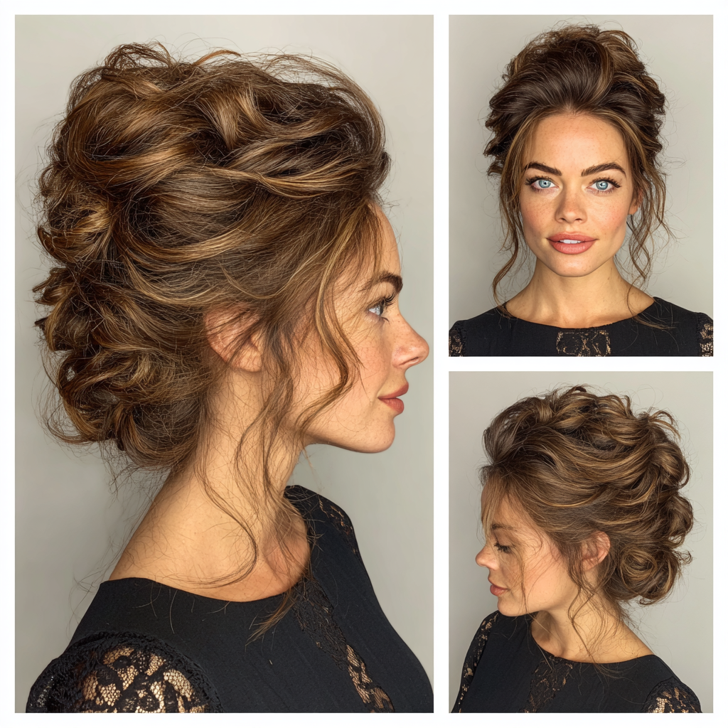 Make a statement with Glam Hair featuring a deep side part and voluminous waves. This hairstyle is perfect for adding drama and sophistication to your overall look. This style is perfect as Prom Hair For Strapless Dress, highlighting your shoulders and neckline. Create a deep side part and use a volumizing mousse to add lift to your roots. Style your hair with loose waves using a curling iron or hot rollers. This creates a glamorous and dramatic effect. It’s a fantastic way to showcase your hair’s texture and shine. To ensure the volume lasts, consider using a texturizing spray or hairspray. This style is particularly stunning for evening events or photoshoots. This Glam Hair style will turn heads.