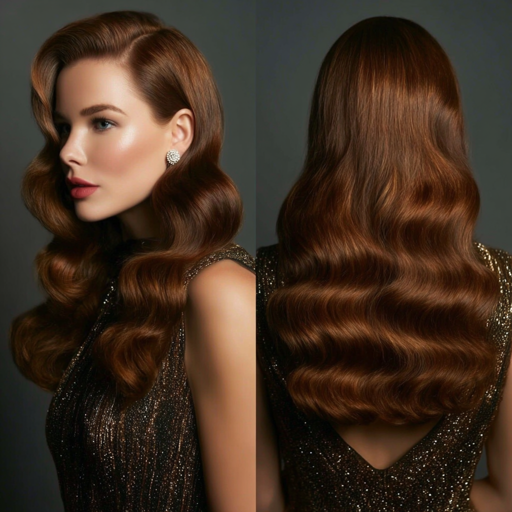 Inspired by the iconic styles of past eras, Glam Hair Vintage Inspired Waves delivers a timeless elegance. This suits any formal event where you are looking to pay homage to old world class and charm. This is a Hairstyles On Gown. These waves are perfect for any special occasion because they evoke images of Hollywood glamour. Start by creating defined waves with a curling iron before brushing them out with a soft brush to achieve that vintage smooth finish. With its distinct lines and stylish elegance, Glam Hair in vintage waves is ideal for those seeking an old-fashioned yet eternally cool look.